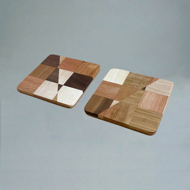 5種類の木を使い、寄木で制作しています。 全て手作業のため、同じ模様は一つもありません。 木の表情をそのまま楽しめる、一点物のコースターです。 サイズ:幅90×奥行き90×高さ5mm 素材:ウォールナット・ホワイトオーク・チェリー メープル・ユーカリ 塗装:撥水セラミック 耐荷重:3kg 完成品:開梱後そのままご使用いただけます 日本製 撥水塗装を施しているため、水洗い可能です。(長時間水につけることは避けてください) 自然の温もりが感じられる手作りのコースターです。 異なる種類の木材を張り合わせて作られたモザイク模様は、1点1点異なる個性を持ち、まさに唯一無二。 見た目の美しさだけでなく、耐久性にも優れており使い込むほどに深まる風合いと、職人のこだわりが詰まったこのコースターは、ご自宅用にはもちろん、贈り物としても喜ばれること間違いなしです。 【色・サイズについて】 ◆商品写真はできる限り実物の色に近づけるよう徹底しておりますが、 お使いのモニター設定、お部屋の照明等により実際の商品と色味が異なる場合がございます。 ◆サイズは約1~2mm前後の誤差が生じる場合がございます。