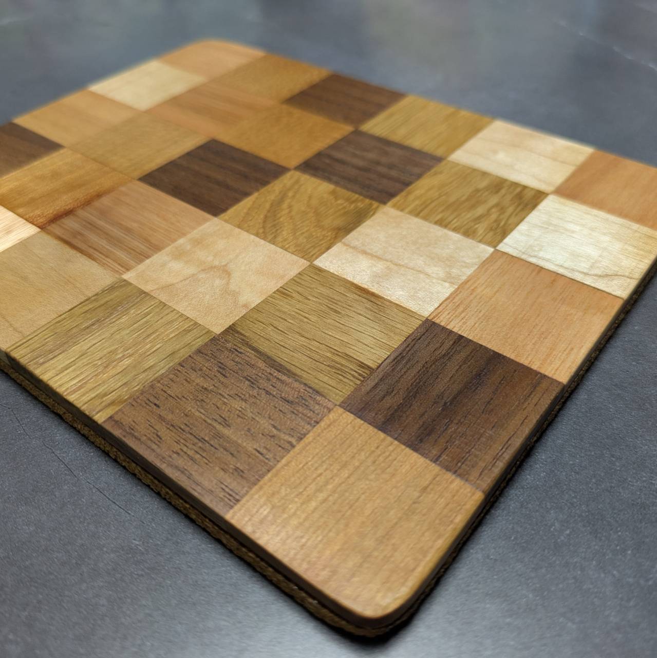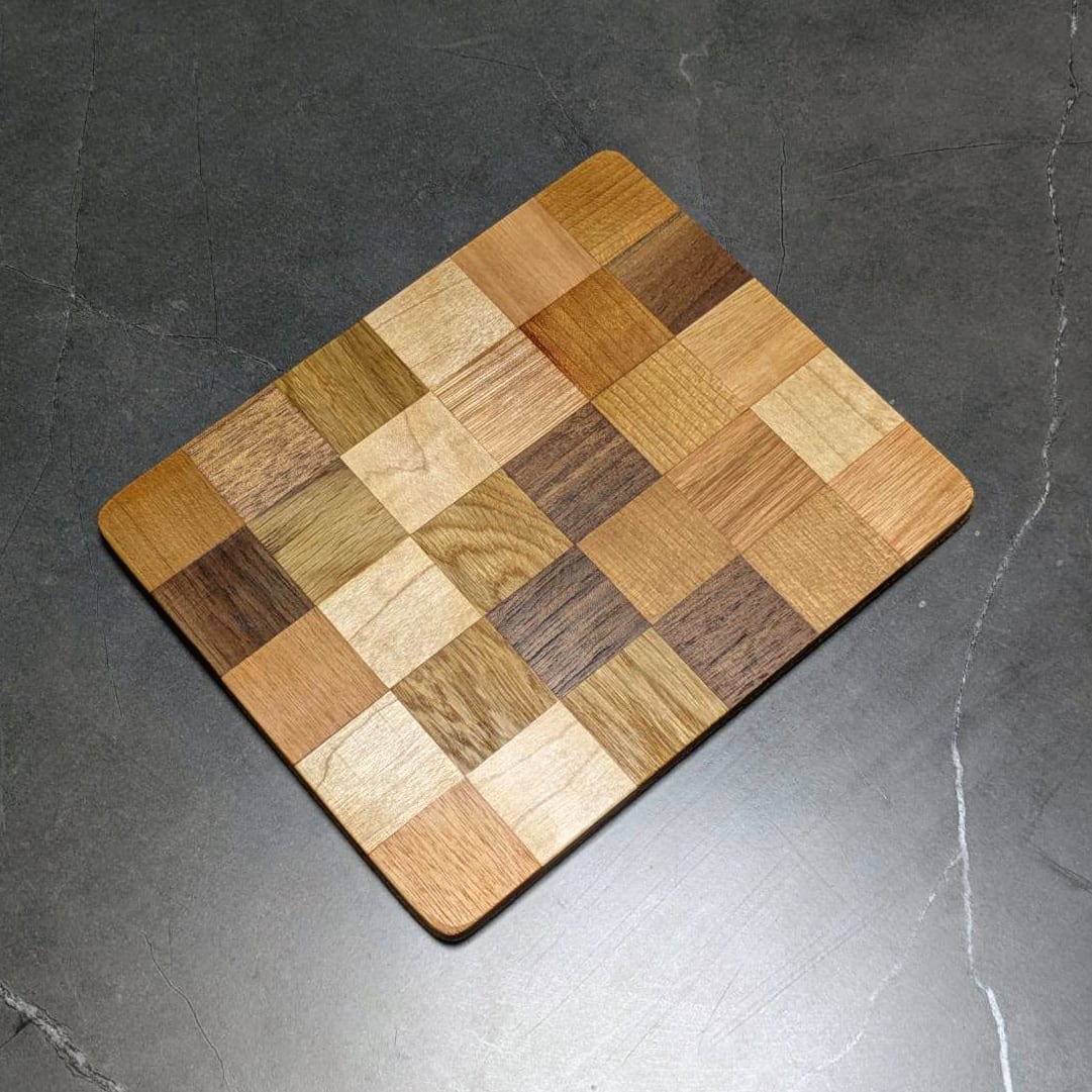 異なる種類の木材を張り合わせて作られたモザイク模様は、1点1点異なる唯一無二の個性を持っています。