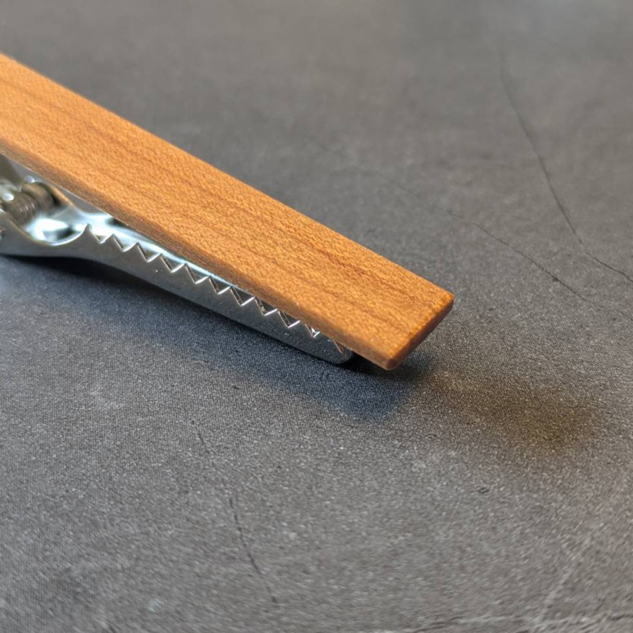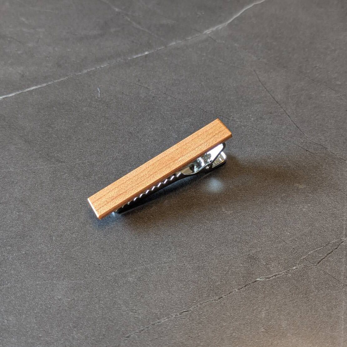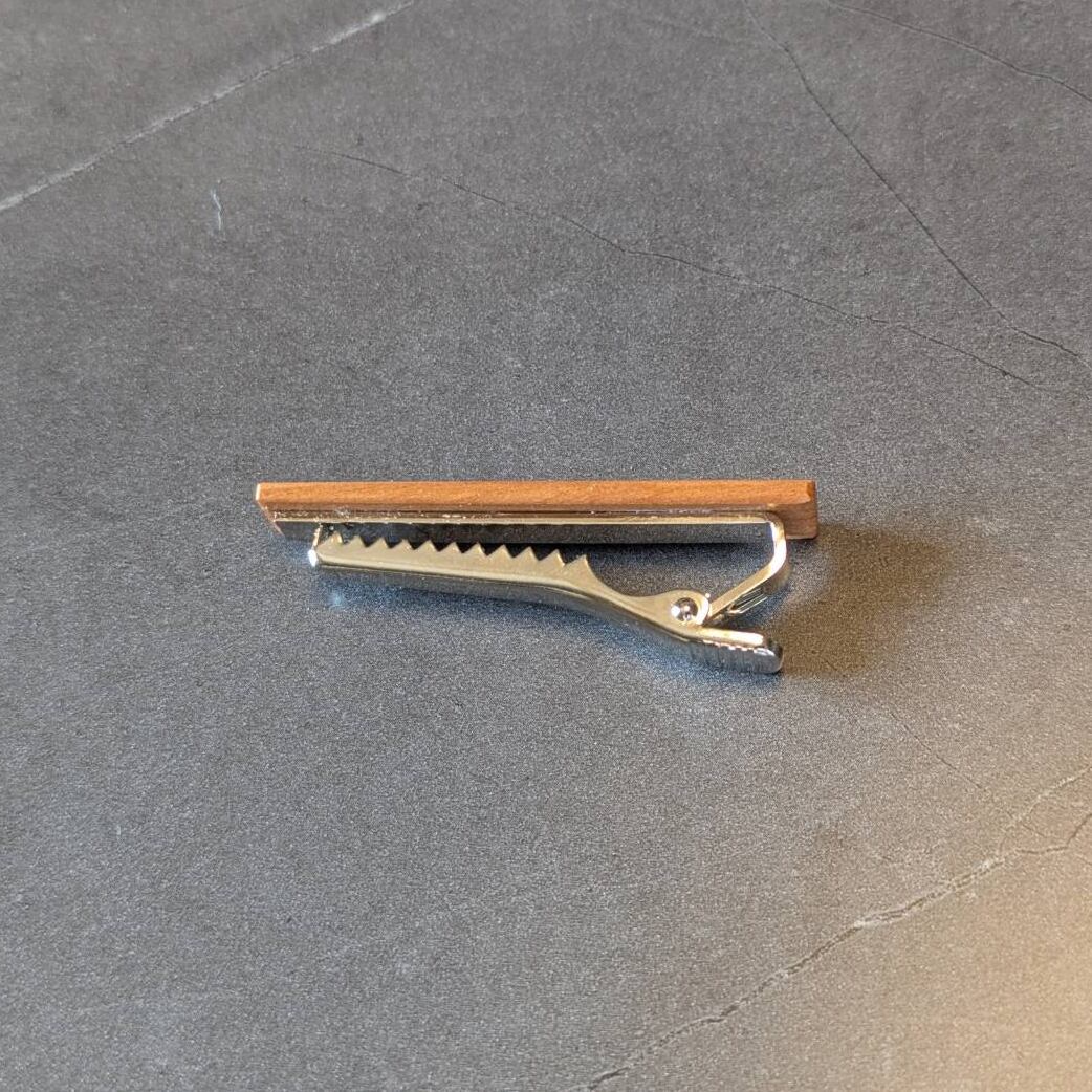 無機質な金属製ネクタイピンとはひと味違う、本物の木を使用したシックなネクタイピン。