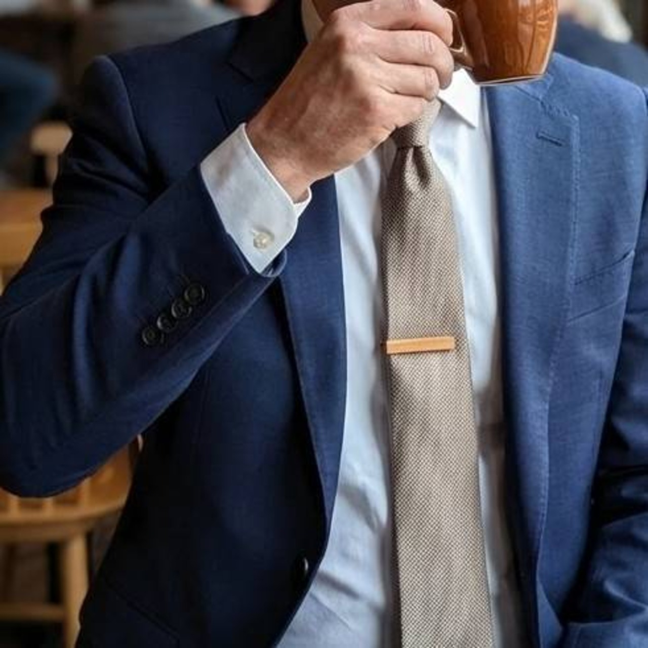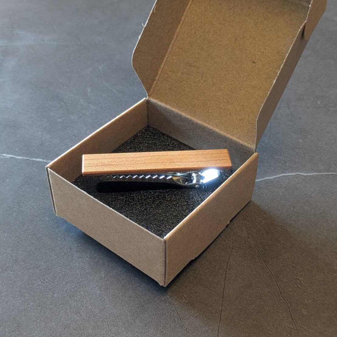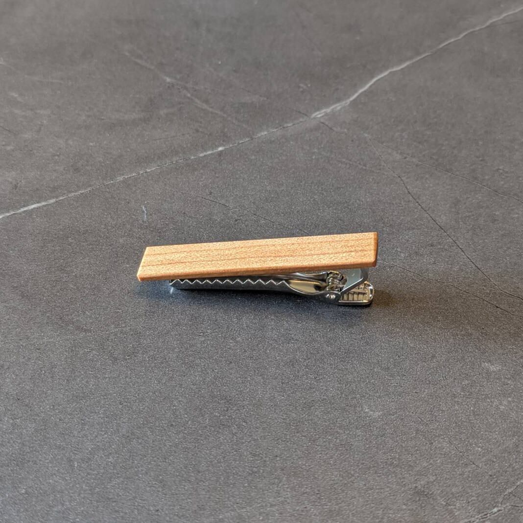 無機質な金属製ネクタイピンとはひと味違う、本物の木を使用したシックなネクタイピン。