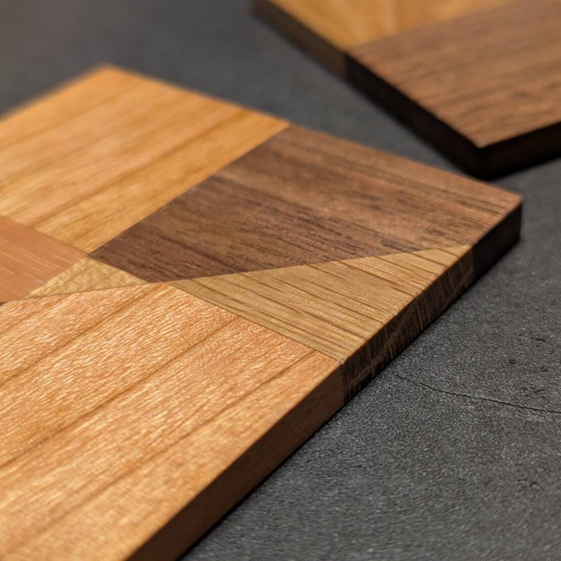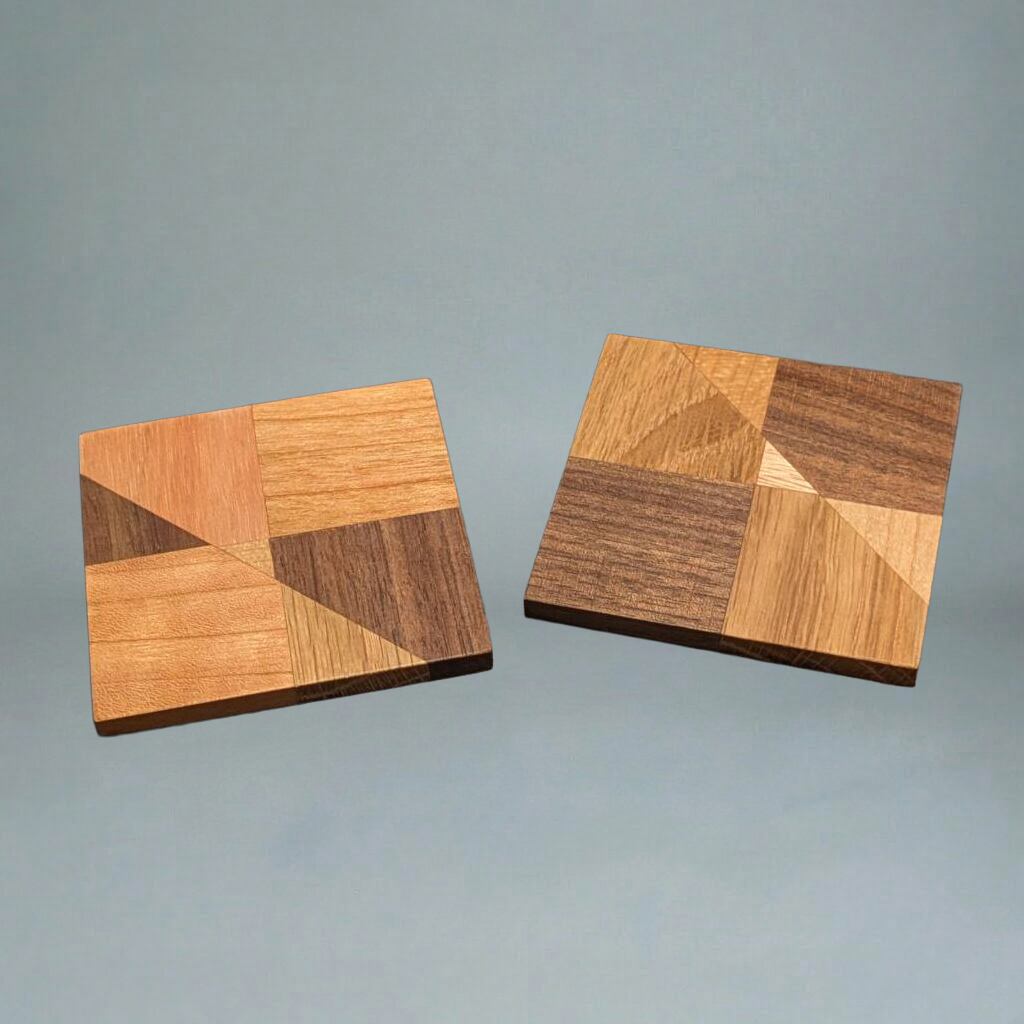 異なる種類の木材を張り合わせて作られたモザイク模様は、1点1点異なる個性を持ち、まさに唯一無二。